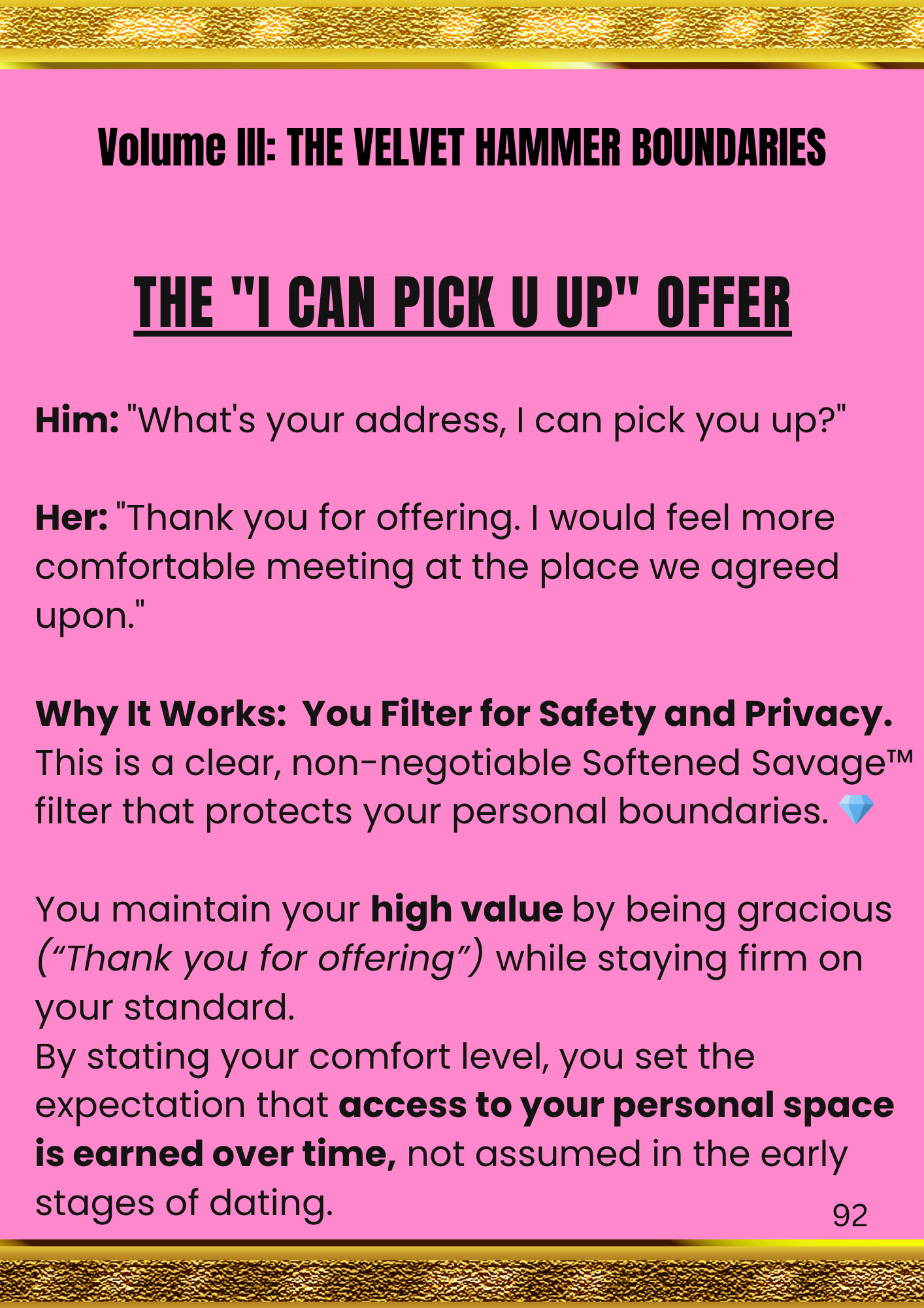 You get the strategy, the confidence, and the scripts, all designed to keep you calm, elegant, and effortlessly in your powerful feminine energy. Crucially, this system instantly filters out low-value men and stops red flags dead in their tracks, maintaining your peace and keeping you safe.